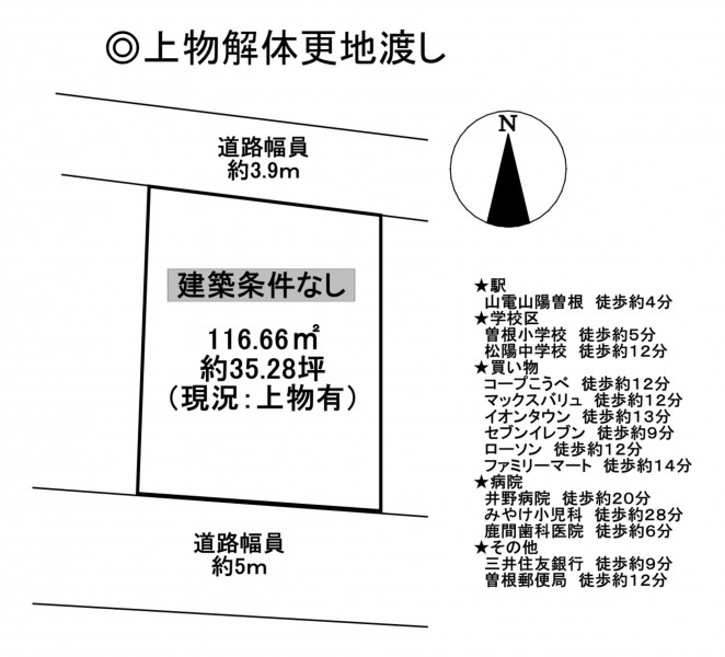 | 現況 | 上物有更地渡し可 | 引渡し時期 | 即時 |