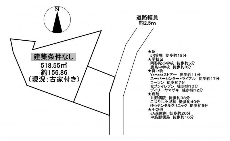 | 敷地面積 | 公簿 518.55㎡(156.86坪) | 価格 | 850万円 |