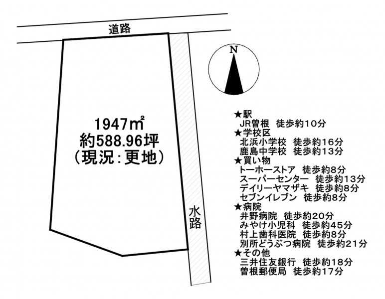 | 敷地面積 | 公簿 1947.00㎡(588.96坪) | 価格 | 1,980万円 |